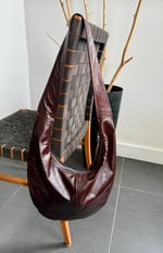 this bag has a tapered rounded strap that rests securely on your shoulder and can also be worn crossbody.